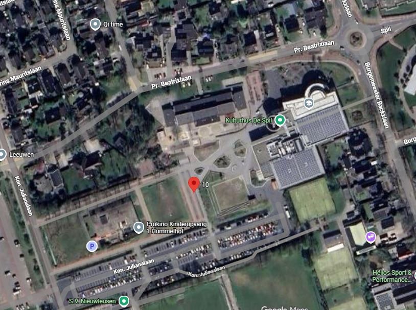 Parkeren kan achter Kulturhus De Spil. Daar is een grote gratis parkeerplaats. U parkeert daar op eigen risico. Vanaf de Burgemeester Backxlaan neemt u op de rotonde de afslag naar de Pr. Beatrixlaan Aan de linkerkant ziet u al direct de locatie Kulturhus de Spil.